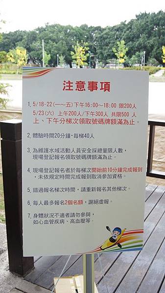 活動採現場報名,每個人限報名2位(也就是一艘獨木舟),體驗時間20分鐘。報名時工作人員會交給我們號碼牌,按順序叫號避免現場秩序大亂。