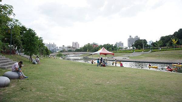 還有~陪孩子在草地上奔跑及等待的時間,我竟然在岸上看到之前在圖書館認識的媽媽,正帶著她們家寶貝在岸邊划獨木舟。