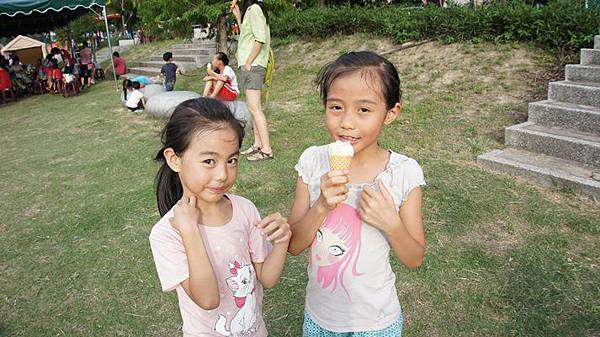 遠遠的傳來叭噗~叭噗的聲音....老闆說一次只能買2球,不然他會賠甜筒的錢。