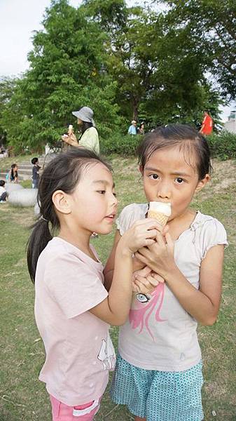結果就變成這樣,上一秒還笑笑的拍照,下一秒就展開搶冰淇淋大戰。
