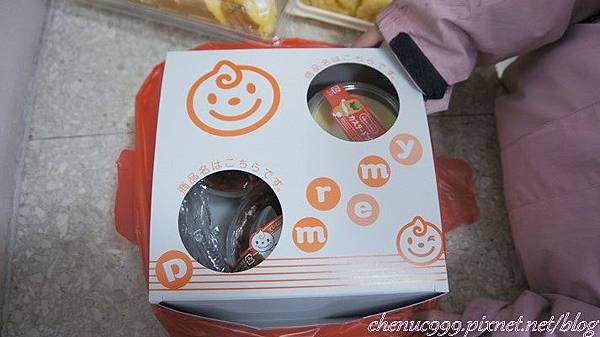 我也買了一盒50円的焦糖布丁杯(右上)。