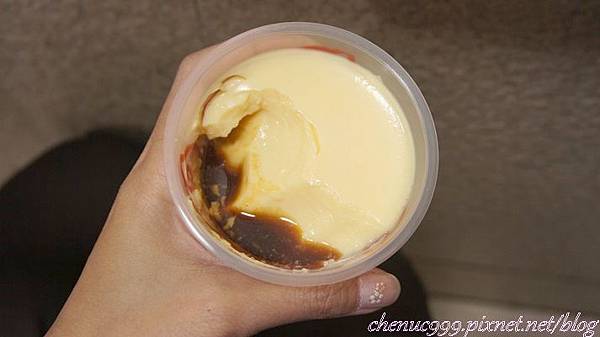 底下的焦糖是液態的,和我在家裡自己烤的布丁一樣味道。