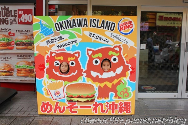 沖繩漢堡王的風獅爺看板,蓁蓁華華己經知道怎麼分辨風獅爺的男女嘍。