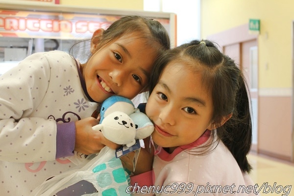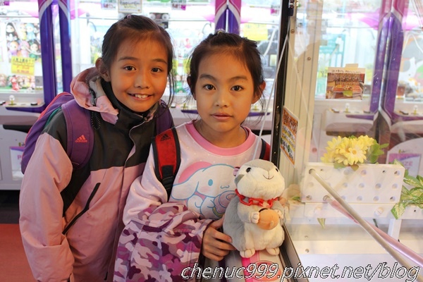 娃娃機店,有一隻好可愛的松鼠(?)會錄音講話,蓁華超愛玩這個,每次都笑到快斷氣~