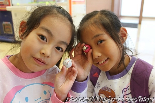 所以這間大創算是意外中撿到的,蓁蓁華華在這裡買了幾隻心愛的玩偶回去,我還請她們吃了超可愛的迪士尼巧克力。