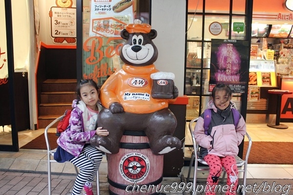 A&W 熊,手裡拿著的就是 A&W 特色飲品,ROOT BEER。