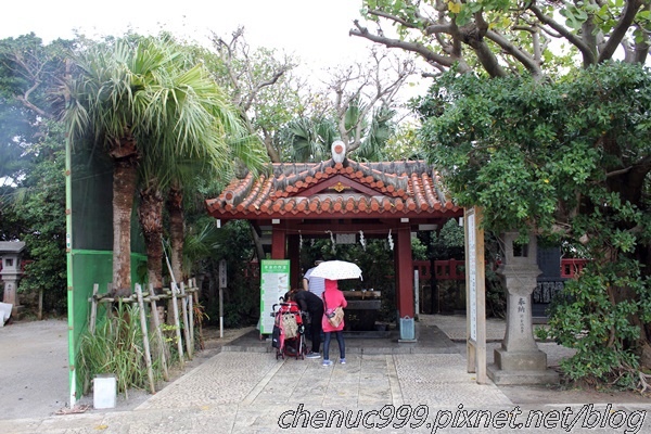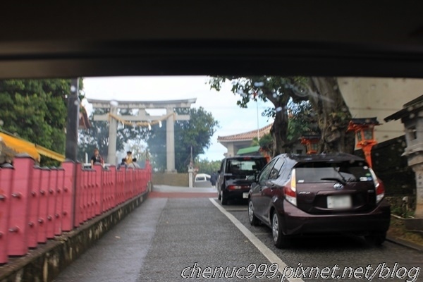 波上宮停車很方便,除了上波的參道旁可以停車之外,工作人員直接導引我們將車子再往上開,停在鳥居旁的停車空間。