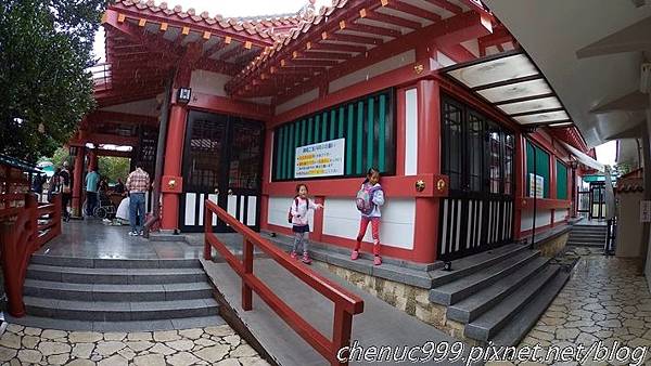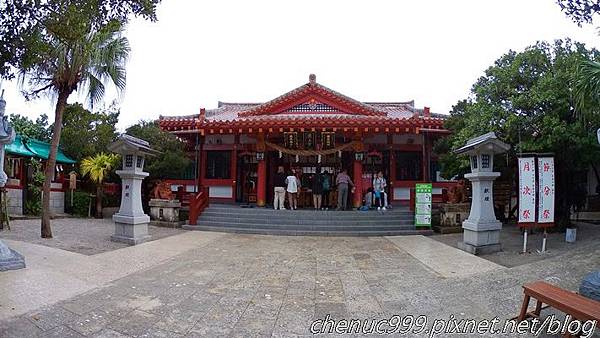 另外我們還找時間去波上宮,正巧遇上祭祀活動什麼的,鳥居旁在燃燒些東西,但又正巧遇上大雨,整個煙霧迷瀰。