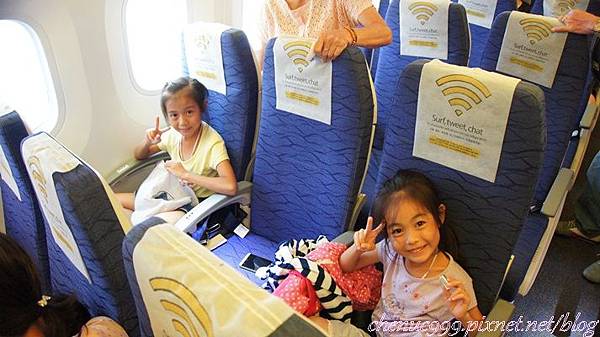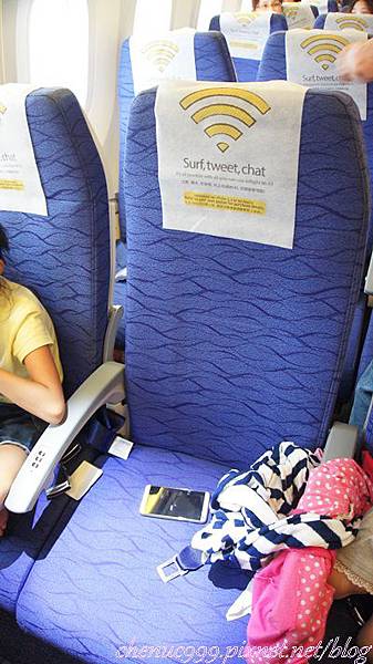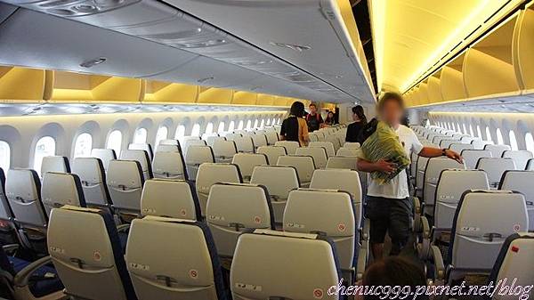 空姐請我們有帶孩子的優先登機,難得見到這麼空曠的飛機~哈哈