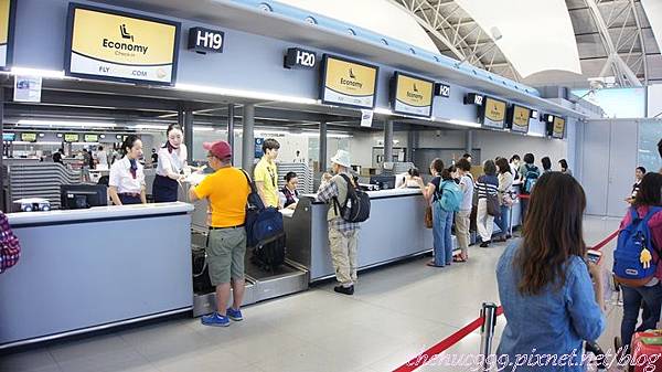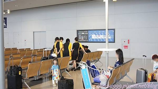 經過剛才搭錯車,跑錯方向,轉換電車後好不容易抵達關西空港,酷航報到櫃台早己經開櫃了,我們趕忙跟上隊伍辦理報到。