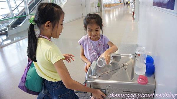過安檢時要將水倒掉,在機場內找到飲水機取些水可以在機上喝。
