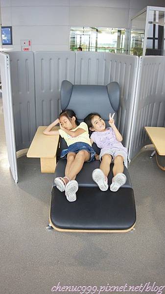 我們無聊到處逛,竟然找到可以躺下來休息的座椅。