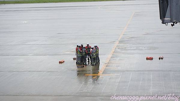 這時候戶外開始下大雨,希望飛機能夠順利起航。