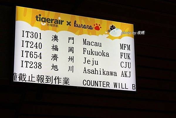 虎航飛旭川、澳門、福岡、濟州的航班,提前於 3:30就可以報到嘍。