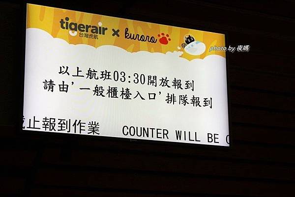 虎航飛旭川空港的班機是 7:10起飛,原本我們以為報到時間和往常的虎航一樣,是提前 2.5個小時,結果不是,是在零晨的 3:30就開放報到。