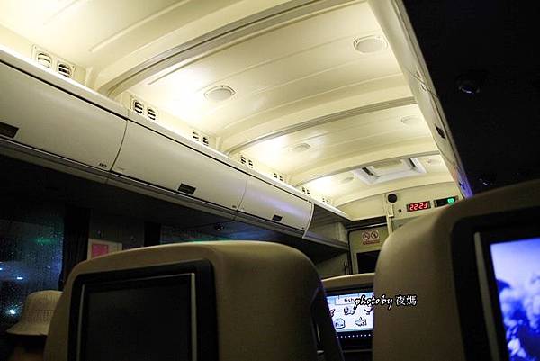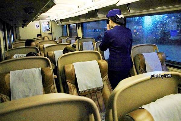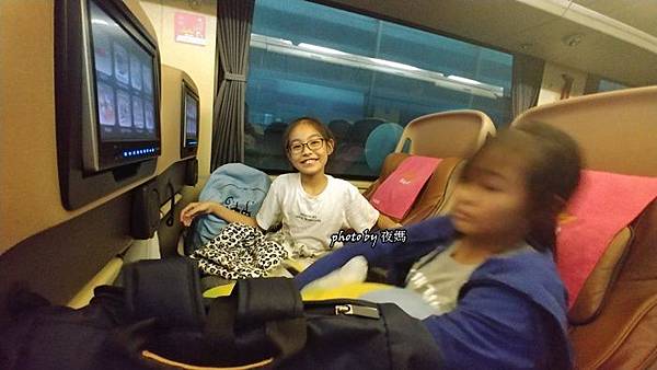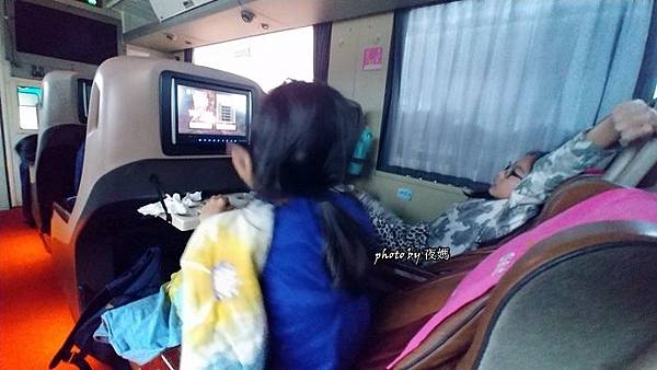 我們的車是舊款的 First Class,皮椅,椅背、腳下可以斜躺斜放,還有簡單的下背按摩。