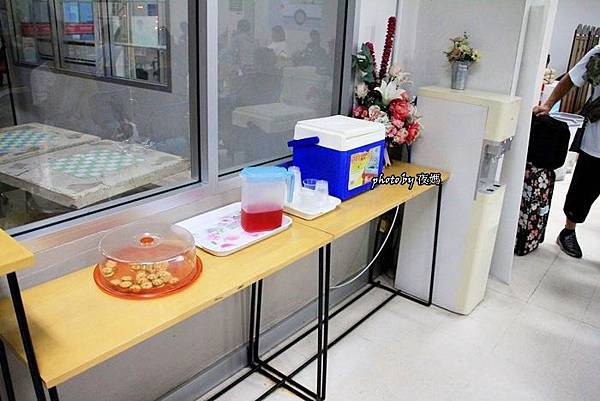 靠門邊有飲水機可以取水,還有不知名的飲品,小點心餅乾。