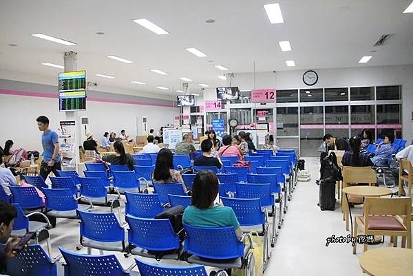 休息室裡有兩台大電視,跑著當天的乘車資訊。