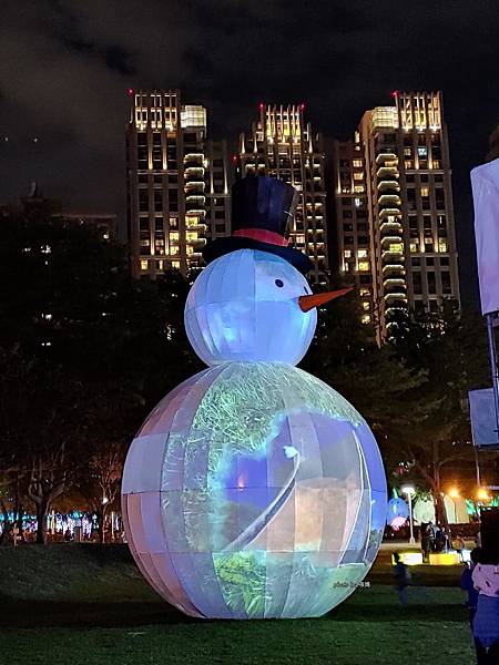 雪人的身上運用了投射光影,介紹台中各大知名景點。