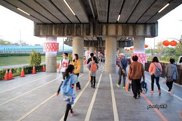 順著餐飲巿集往下走到底,會看到這個人行步道,走到最尾端就可以通到馬場園區。