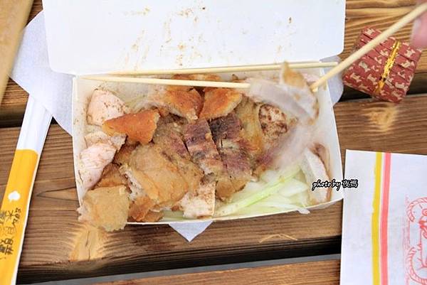 現點現切的烤豬,200元。底下舖的洋蔥也好吃。