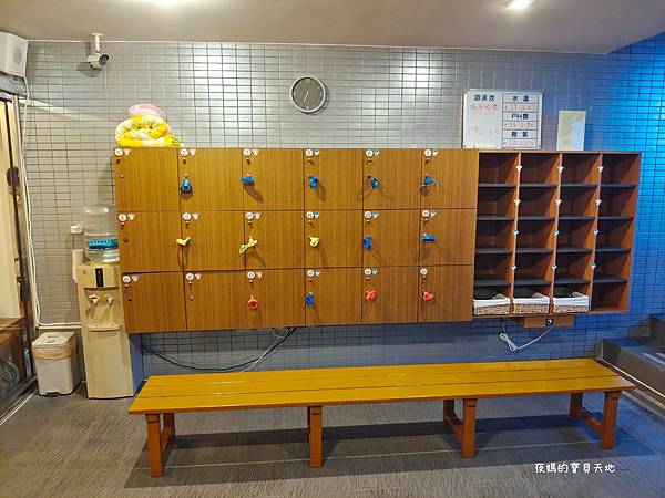 裡頭有飲水機、可上鎖的置物櫃、吹風機。