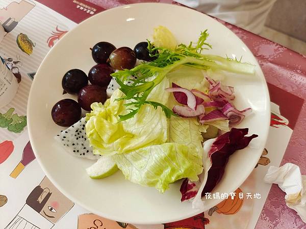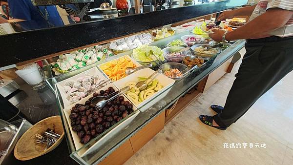 每天都有四樣不同的水果,生菜沙拉區有地瓜。